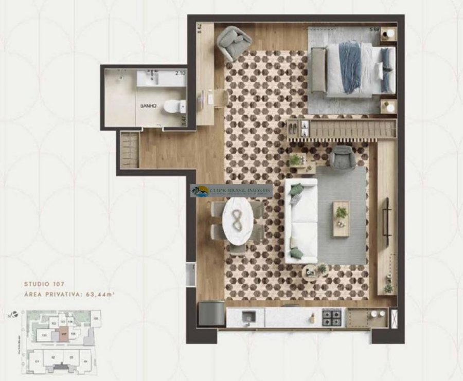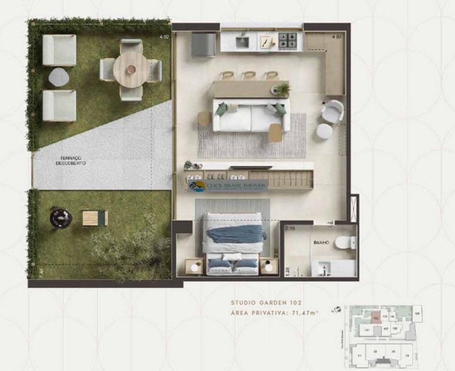 - Dormitórios1 Suítes1 Banheiros1