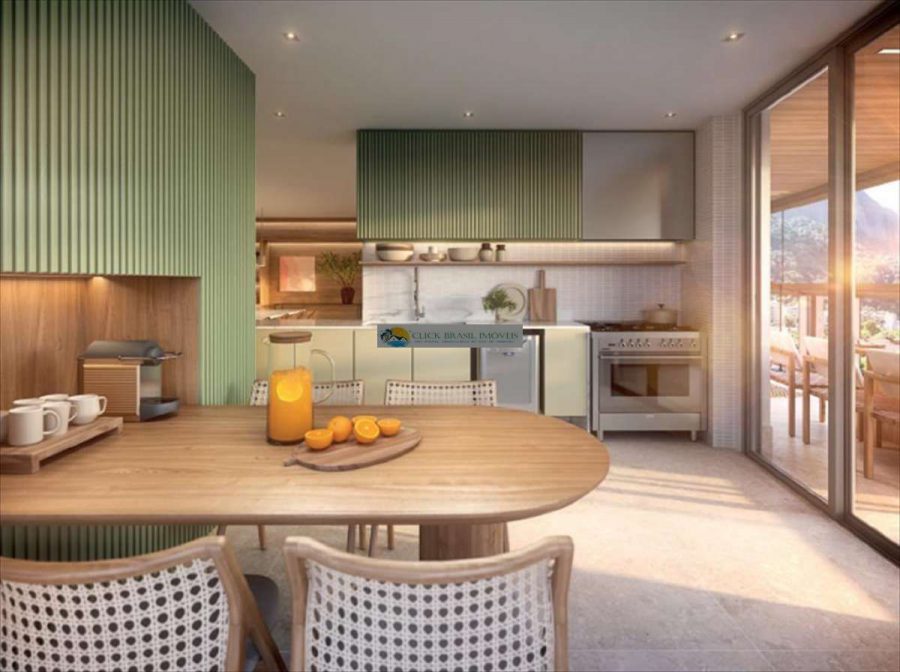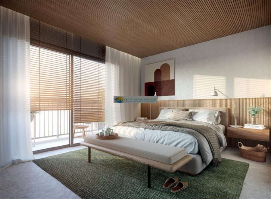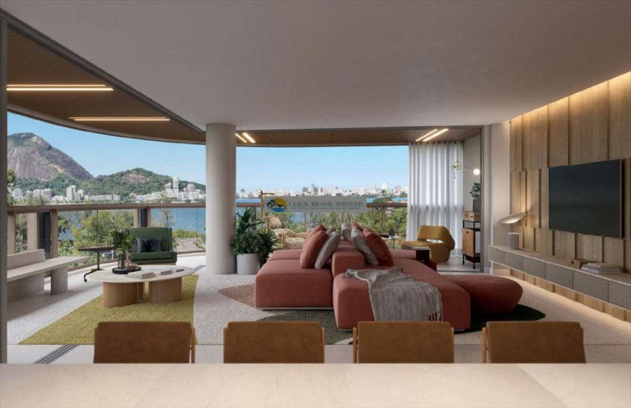 * Sala integrada à varanda piso nivelado, pé direito 2,5m de altura e com cortina de vidro