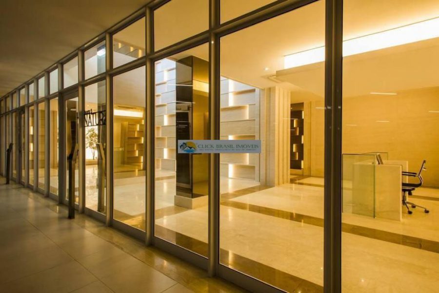 - Fachada em mármore e pele de vidro.